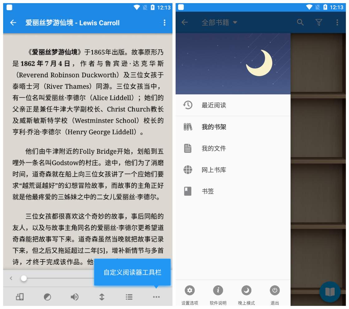 静读天下专业版Moon+ Reader Pro:这个软件在翻页效果上实在不错,在一个就是这个名字取的也好啊,很大气文艺的感觉。只是小编我实在不想理这个东西了,频繁更新,实在想弃之不理,但又是个好东西,木得办法。