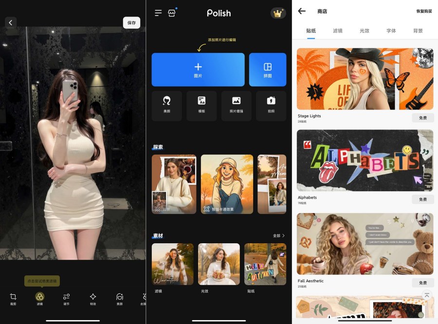 【应用名称】:专业照片编辑器 - Polish 【应用包名】:photo.editor.photoeditor.photoeditorpro 【应用版本】:1.68 【应用大小】:28.0MB 【版本说明】:视频编辑器 轻松使用手指剪裁和拆分视频,调整视频速度从0.1x到5.0x。 选择媒体库中的视频,混合视频进行合并,创建照片幻灯片和照片视频制作者。 通过分享 IG Stories、TikToks 和 Reels,成为视频明星。 人工智能照片编辑器 卡通脸部制作和新的头像制作者。 尝试大量卡通脸部滤镜,制作卡通照片。 包含多种美学滤镜,如Lomo、PINK、Vignette等,让您的照片更加生动。 故障效果和背景 模糊照片背景,获得类似专业相机的DSLR摄影效果。 使用人工智能背景橡皮擦更改、移除和交换背景。 霓虹和滴水艺术 添加酷炫的霓虹形状和背景,创建美学艺术设计。 选择您喜欢的滴水效果,定制您自己的风格。 拼贴制作者 提供100多种布局、大量背景、相框、滤镜和贴纸可供选择。 使用模板编辑Instagram帖子、IG故事和情绪板,为您的社交媒体带来更多创意。 特点 修复旧照片和划痕,重温珍贵时刻。 提供100多种美学滤镜,让您的照片更具艺术感。 具有独家的故障效果,让您的照片和视频更加独特。 支持曲线和HSL色彩模式,满足您的专业编辑需求。 可添加艺术字体和emoji贴纸,为照片增添更多趣味性。 支持高清分享到各大社交平台,与朋友分享您的创作成果。 【使用方法】:打开即用