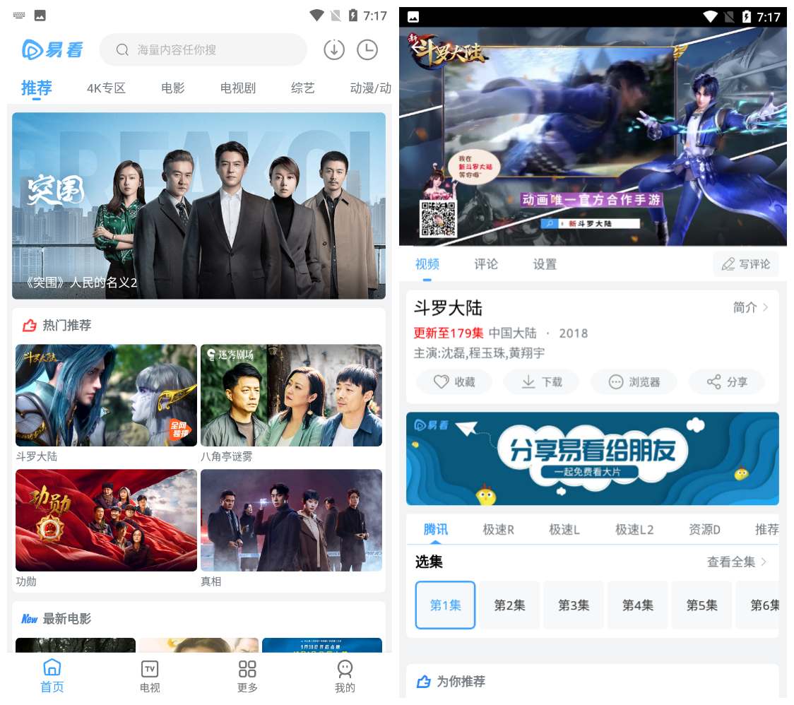 易看汇聚了全网大量的影视资源,国内外各种影视大片都可以在这里找到,并且用户可以根据自己的喜好来进行搜索观看,系统也会给你进行推荐,而且实时更新,让用户轻松就能享受到更多的观看体验,并且没有广告哦,还支持离线下载,有感兴趣的用户千万不要错过了哟!