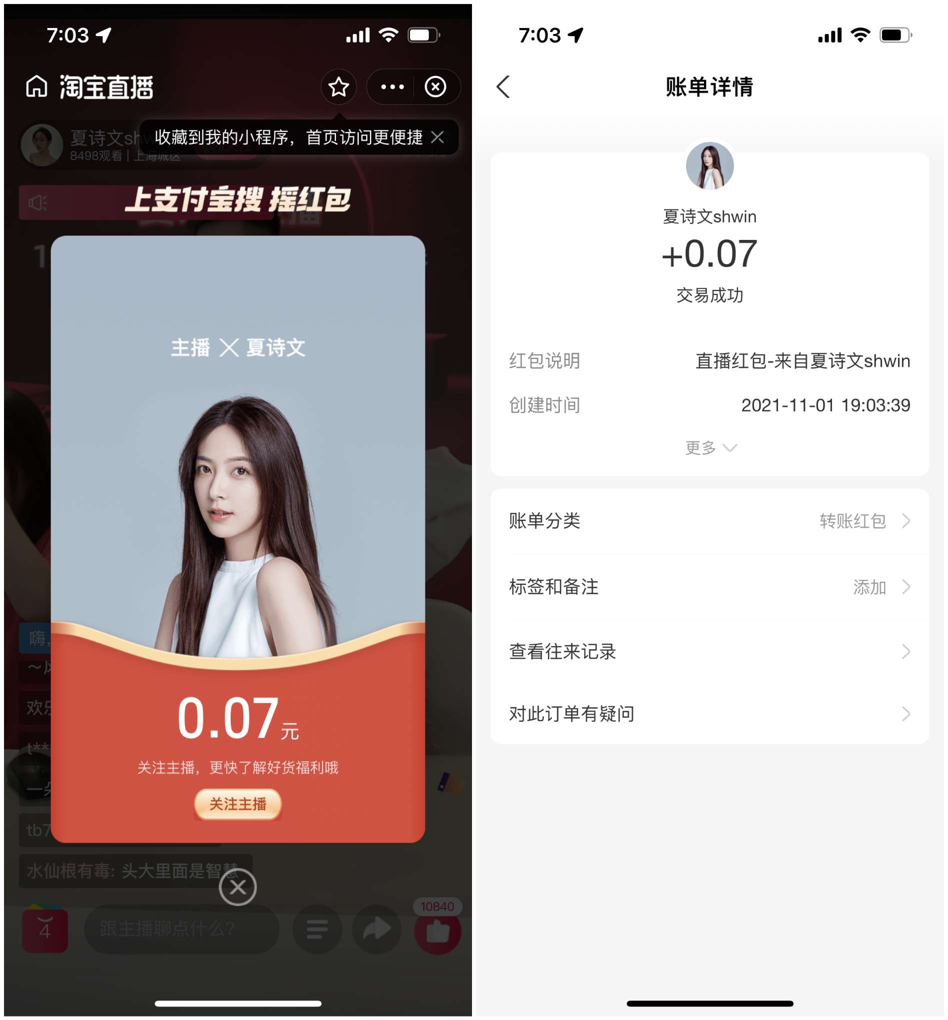 抽到现金后需要观看直播15秒或30秒,点击直播间悬浮红包后现金,秒到账;