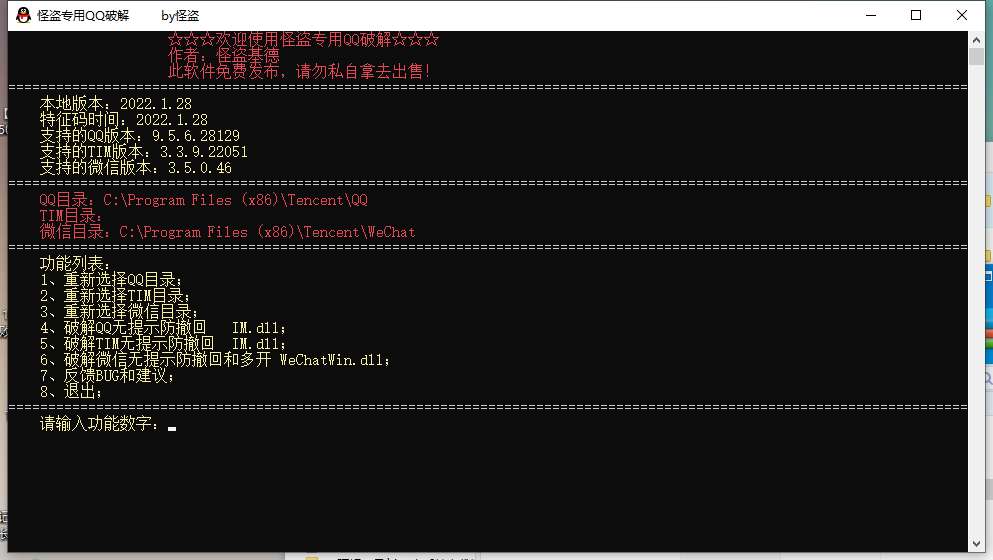 本次为大家分享的是怪盗专用破解 支持QQ/微信/TIM防撤回