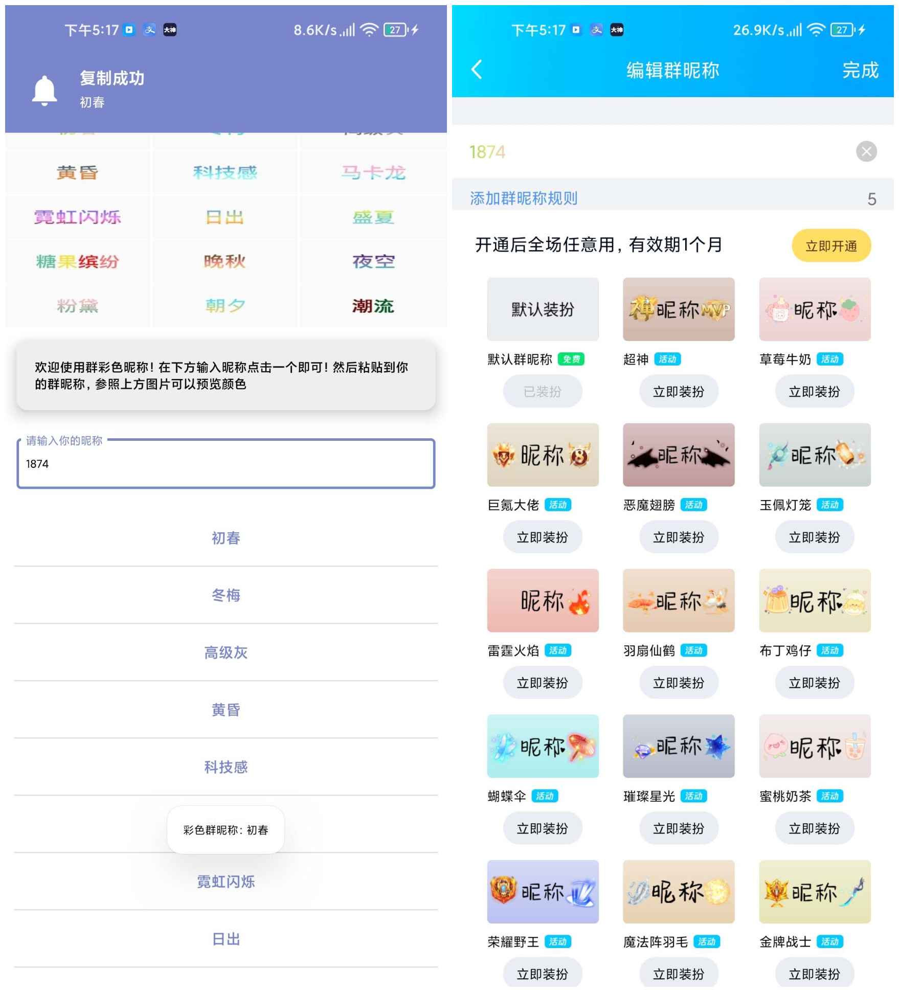 彩色群昵称APP是最新的QQ群彩色群昵称设置不在需要会员!是的让你没会员也可以设置! 不在为因为不是会员而格格不入!